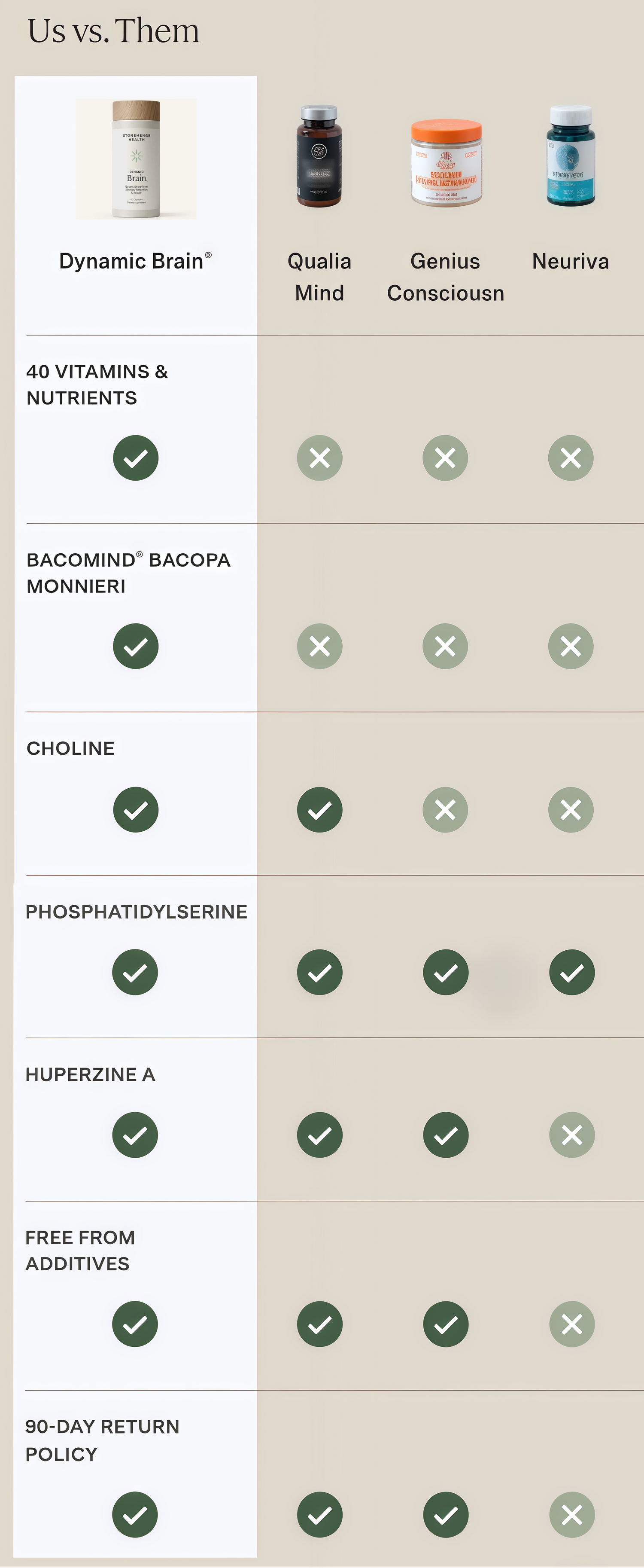 🧠 Contains BacoMind Bacopa monnieri—the only bacopa extract supported by a human safety clinical study* plus Phosphatidylserine, Huperzine A, and Choline
