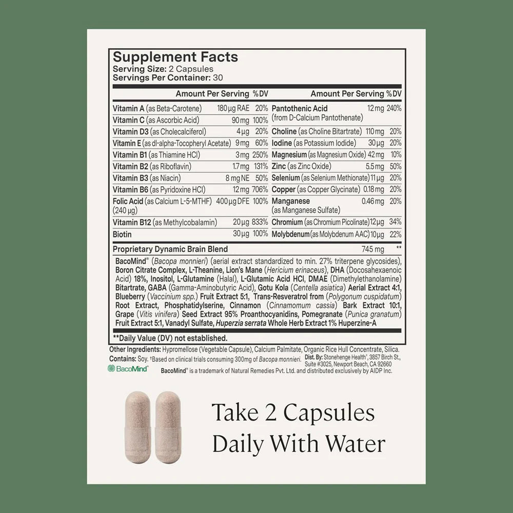 🧠 2 Capsules per serving. Each bottle contains 30 servings.