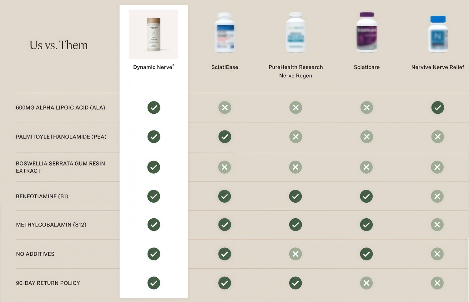 Dynamic Nerve® is made with a proprietary blend of nutrients, amino acids, and antioxidants that have been shown to be effective in promoting nerve health and comfort.*